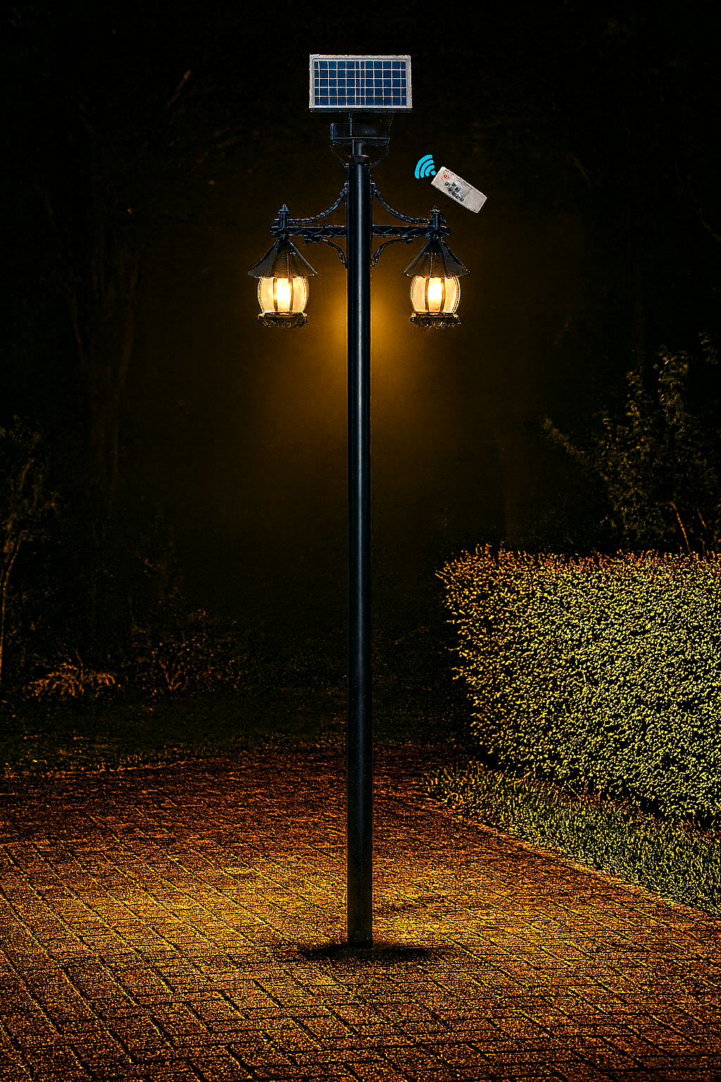 - 2 Şapkalı Sekizgen Fener Ters 2 Rumeli Kol Flanşalt Güneş Enerji Panelli