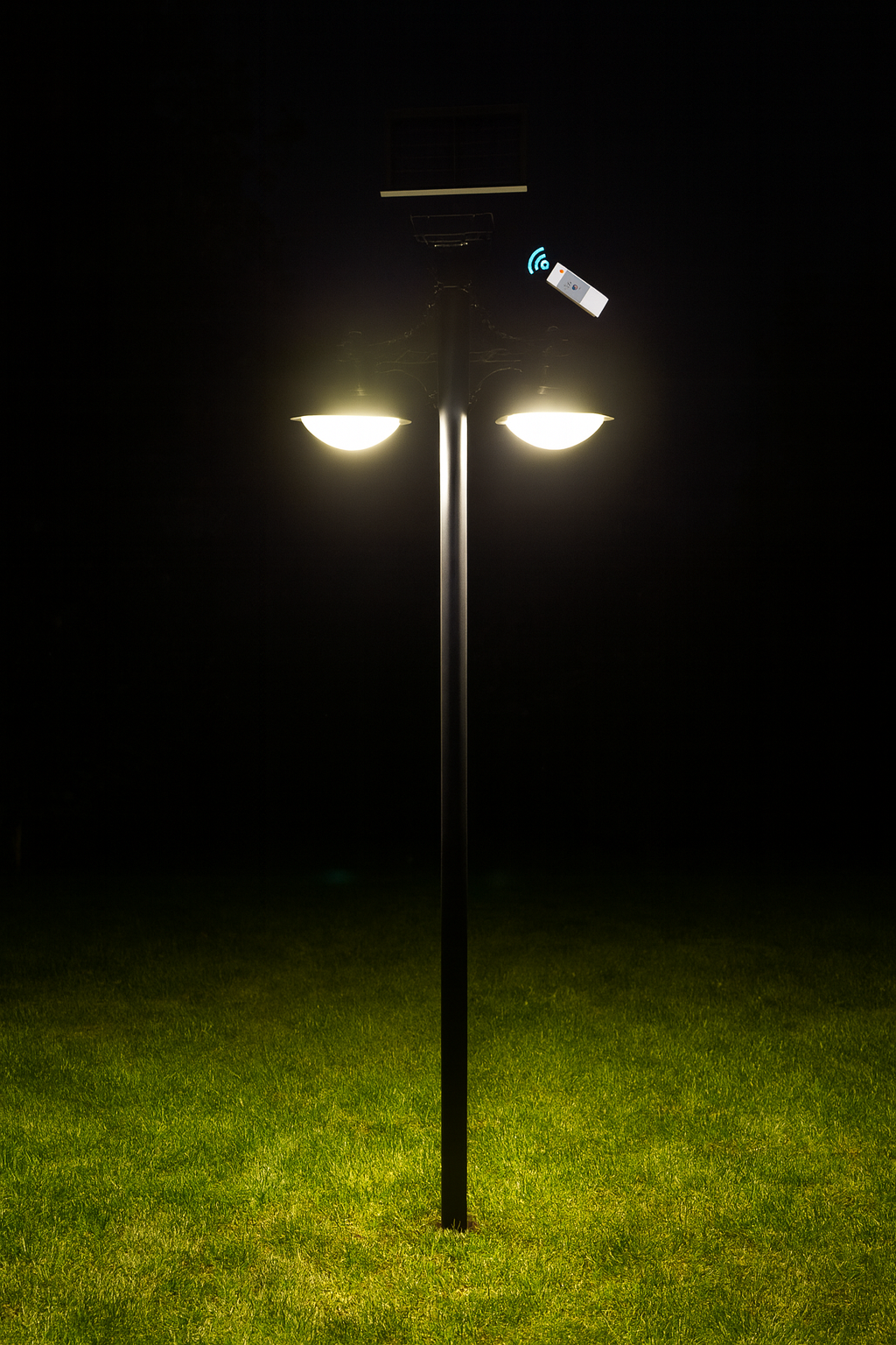 Güneş Enerjili Solar Aydınlatma Direği 35’lik Şapka, Şeffaf Glop, Rumeli Kol, Flanş Alt