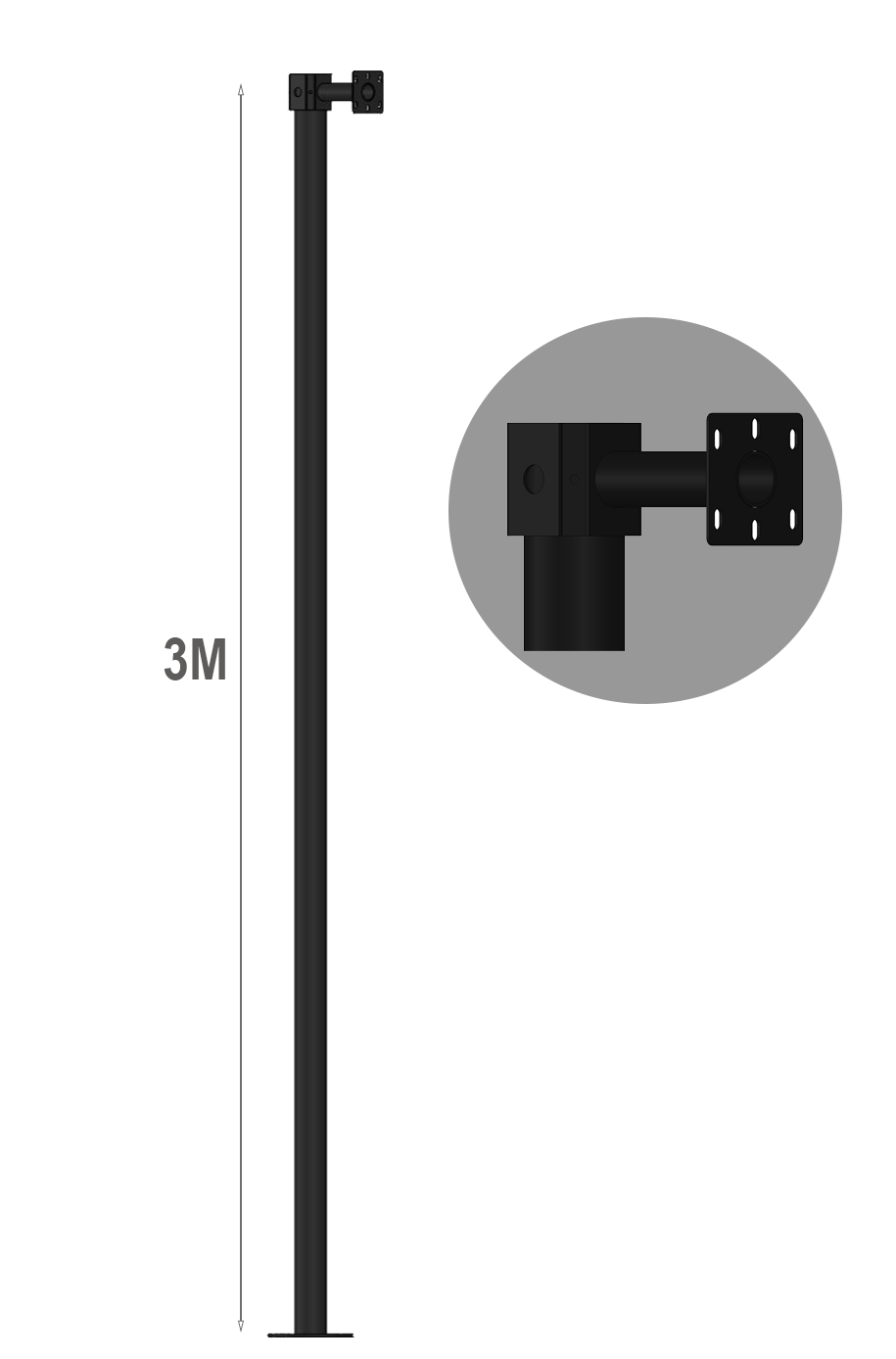 - Güvenlik Kamera Direkleri, Polyester ile Elektrostatik Toz Boya Kaplamalıdır. 3 metre, Ø76 mm, 2,5 mm kalınlığında çelik boru, çelik flanş tabanı, uzun ömürlü dış mekan park ve bahçe kamera direği. V şeklinde otomatik sigorta rayı dahildir. Topraklama bağlantı ankrajları dahildir (ankrajlar fiyata dahildir).