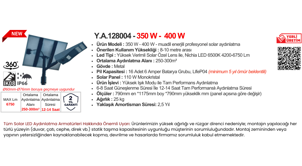 Tüm Solar LED Aydınlatma Armatürleri Hakkında Önemli Uyarı: